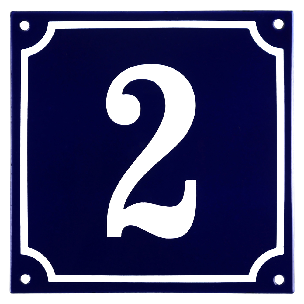 Emaljskylt 2 blå - vit 15 x 15 cm modell 11
