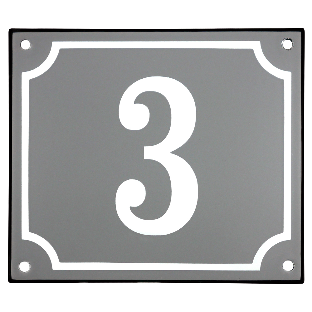 Emaljskylt 3 grå - vit 14 x 12 cm modell 18