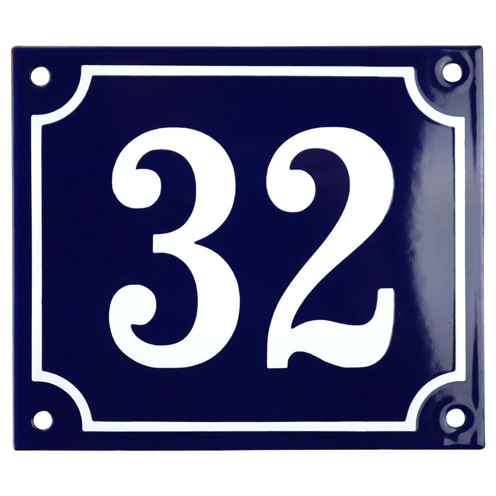 Emaljskylt 32 blå - vit 14 x 12 cm modell 11
