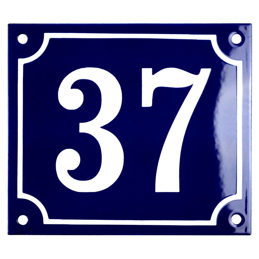 Emaljskylt 37 blå - vit 14 x 12 cm modell 11