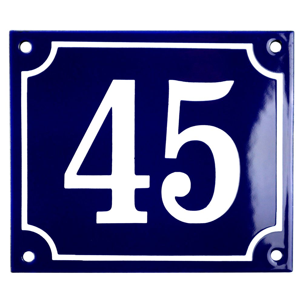 Emaljskylt 45 blå - vit 14 x 12 cm modell 11
