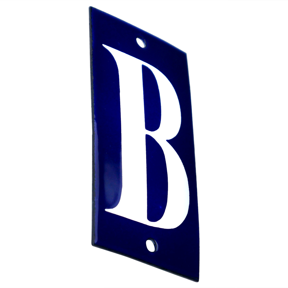 Emaljskylt B blå - vit 5 x 10 cm modell 14