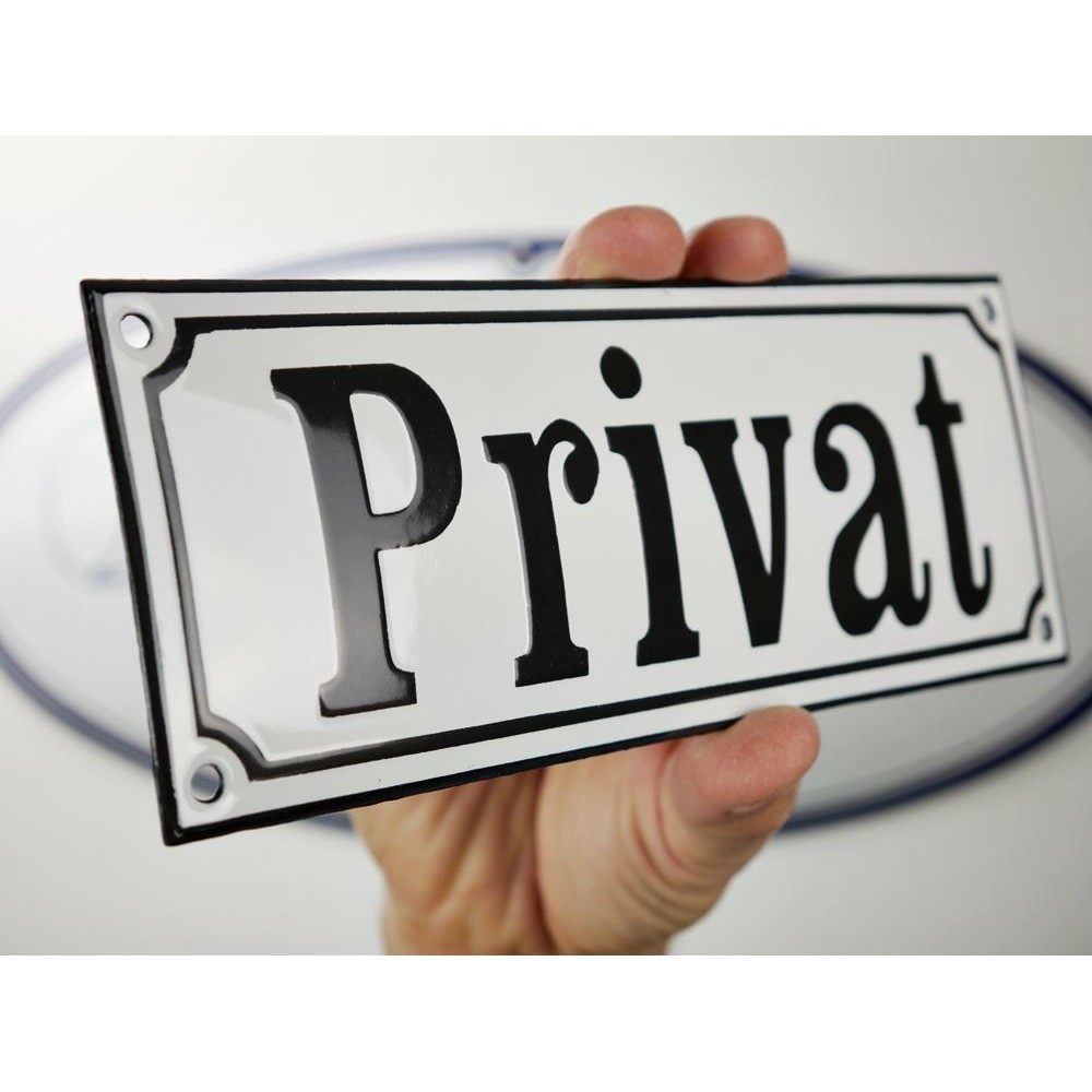 Emaljskylt Privat vit - svart 22 x 8 cm modell 10