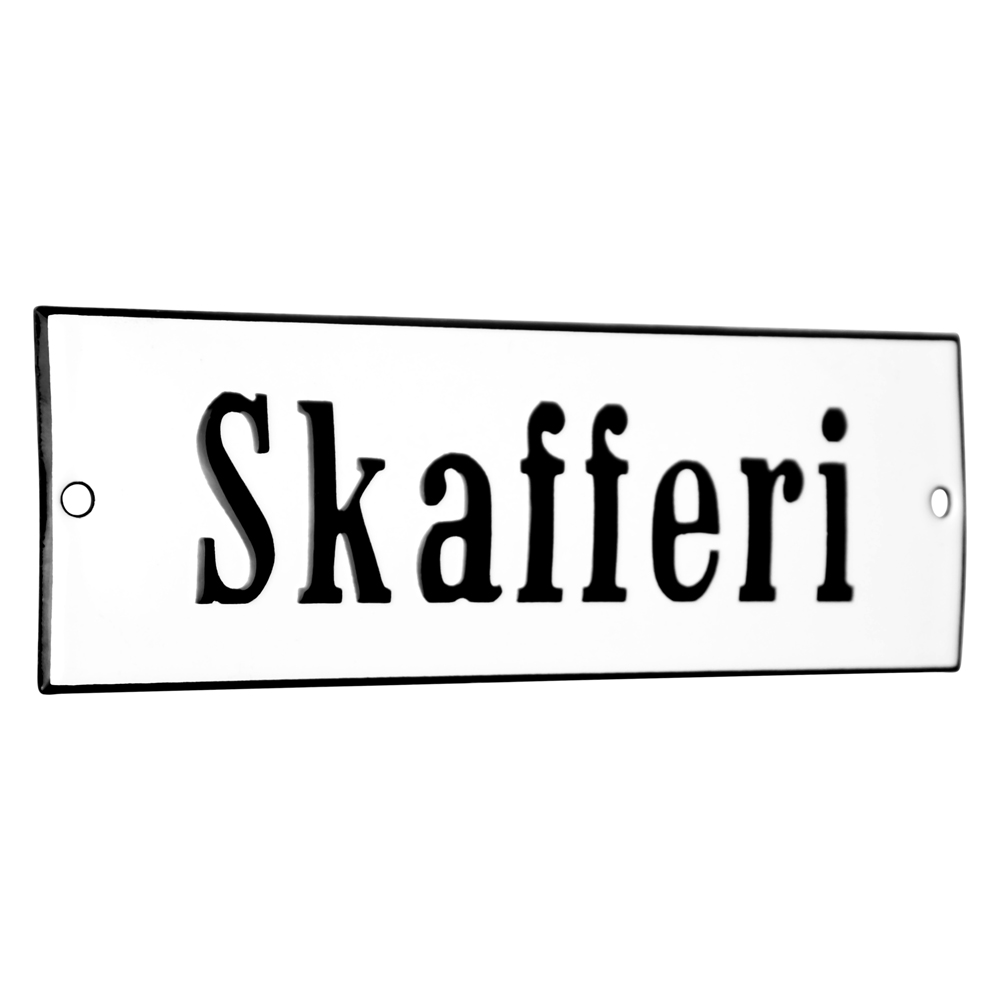 Emaljskylt SKAFFERI vit - svart 15 x 3 cm modell 20