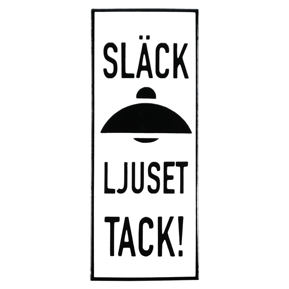 Tags: skyltSLÄCK LJUSET TACK!, vit, modell 20, textskylt 2.5:1