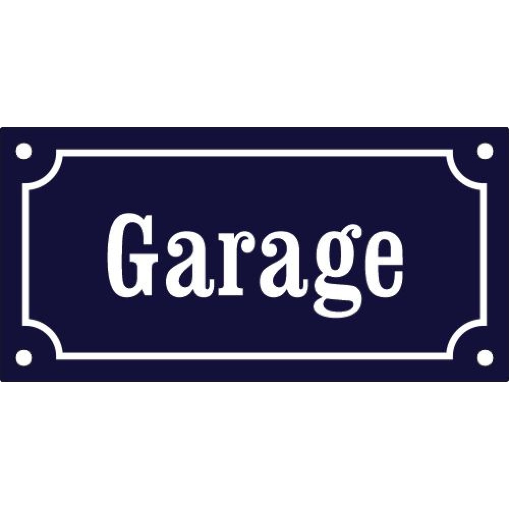 Emaljskylt Garage blå - vit 15 x 7,5 cm modell 11