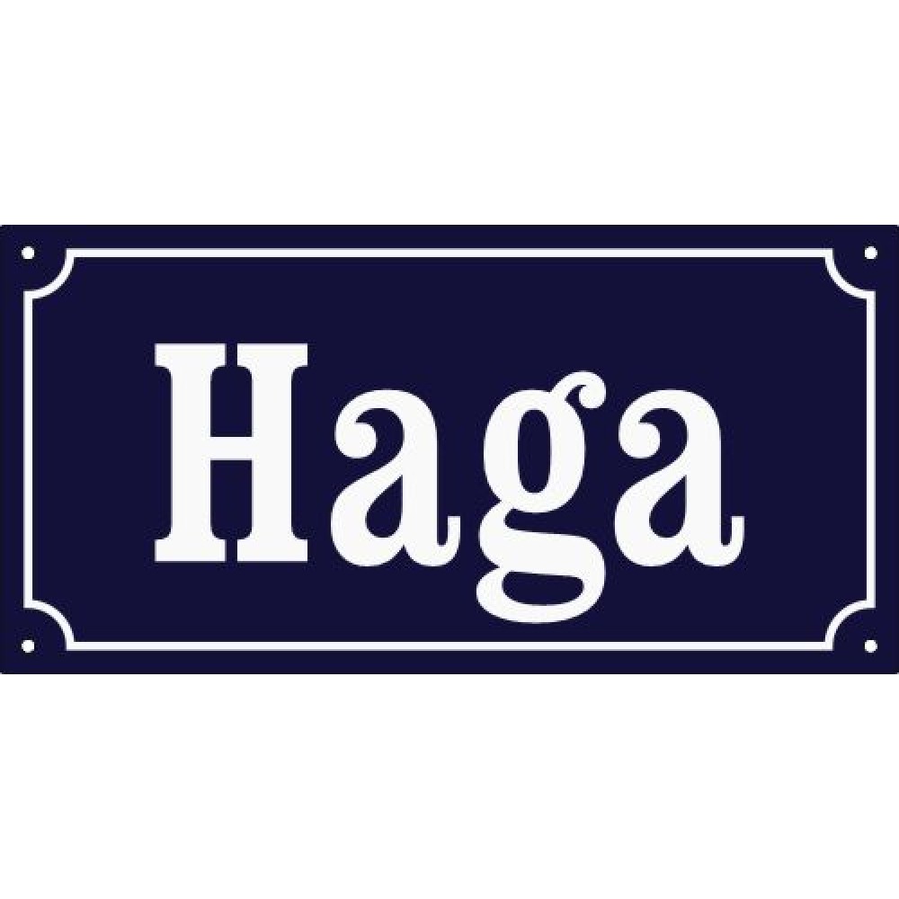 Emaljskylt Haga koboltblå-vit 32x16 cm