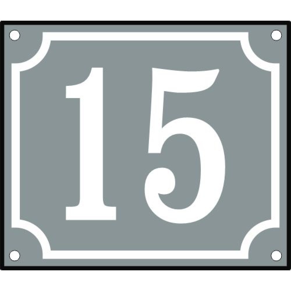 Emaljskylt 15 grå - vit 14 x 12 cm modell 18